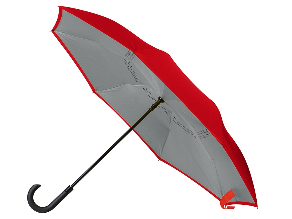 Главная ->Корпоративные подарки и рекламные сувениры на складе -> Зонты -> Зонты-трость -> Зонт-трость наоборот Inversa, полуавтомат, красный/серый